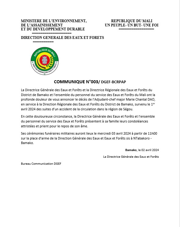 COMMUNIQUE N°003/ DGEF-BCRPAP